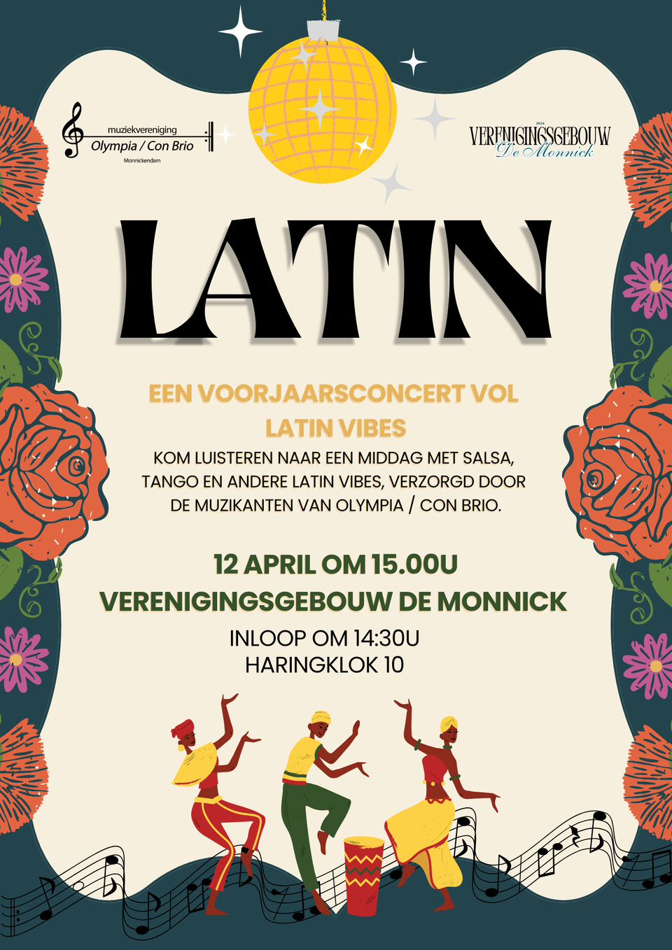 Dit jaar hebben wij het thema Latin. In verenigingsgebouw De Monnick worden vrolijke en kleurrijke nummers ten gehore gebracht. Hier moet je bij zijn!
