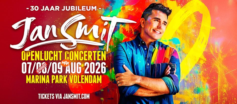 In 2026 staat Jan Smit maar liefst 30 jaar op het podium en dat wordt natuurlijk gevierd zoals alleen hij dat kan: met muziek, gezelligheid en een flinke dosis goede vibes.