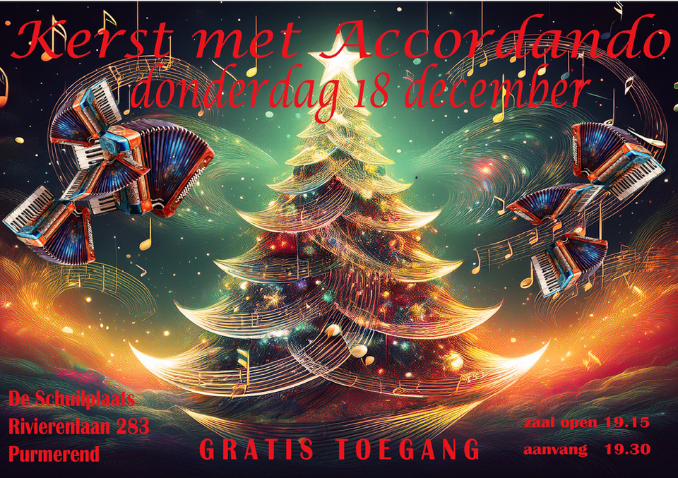 Op donderdagavond 18 december 2025 organiseert accordeonvereniging Accordando een gezellig kerstconcert in CGK De Schuilplaats in Purmerend.